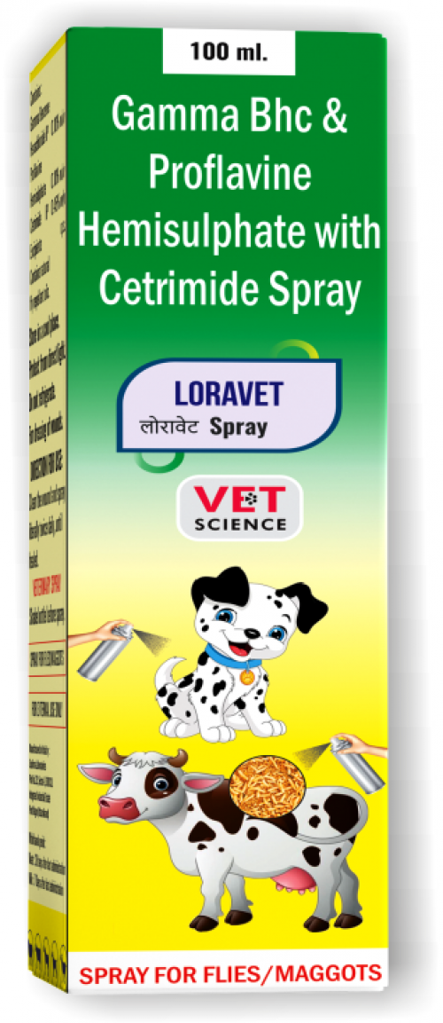 Cephalexin ....... I.P ....... 100 mg, Neomycin Sulphate ....... I.P ....... 100 mg, SPRAY FOR FLIES/MAGGOTS Pridnisolone ....... I.P ....... 10 mg